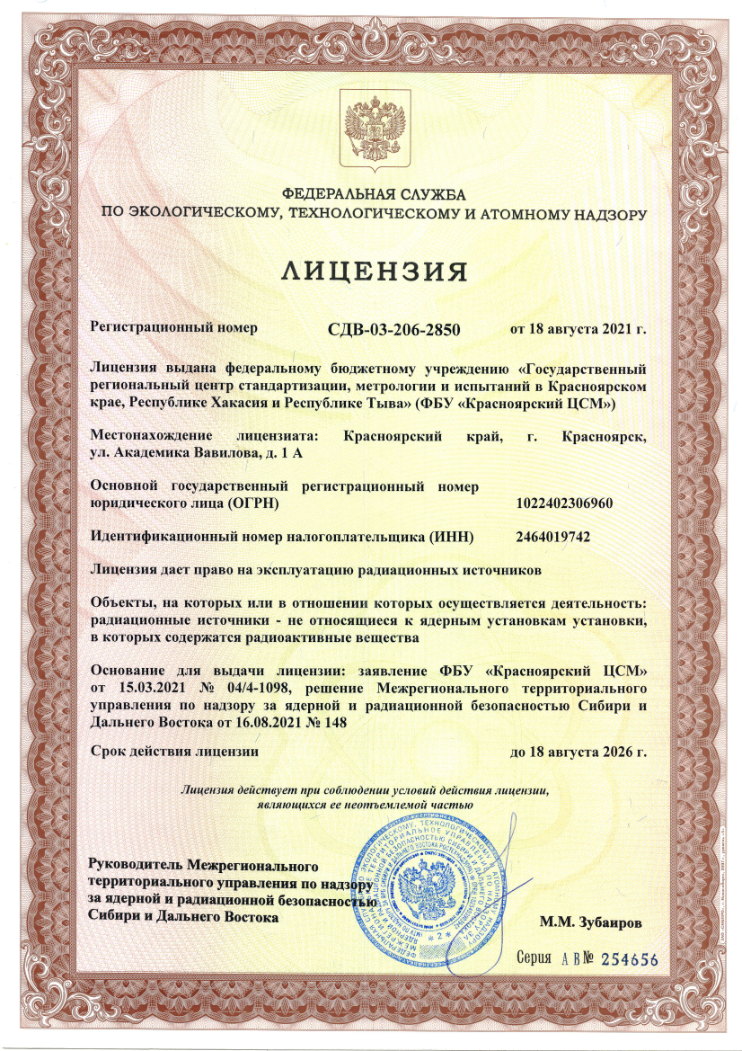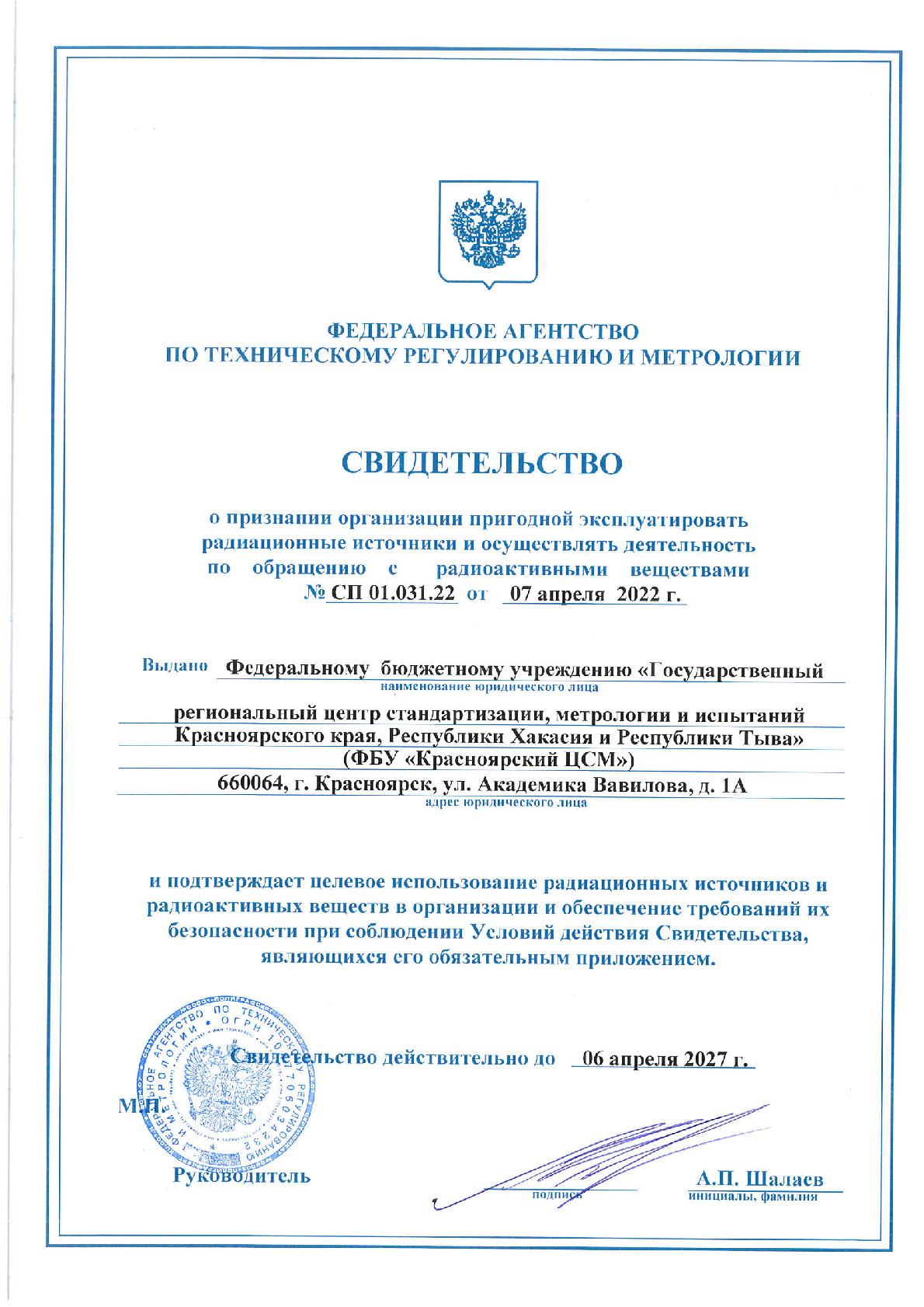 Свидетельство о признании организации пригодной эксплуатировать радиационные источники