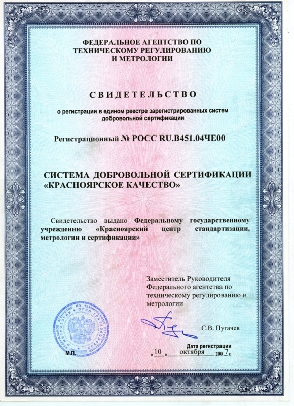 Свидетельство о регистрации в едином реестре зарегистрированных систем добровольной сертификации