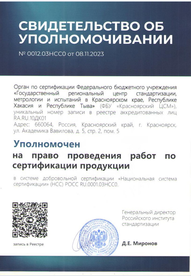 Свидетельство об уполномочивании на право проведения работ по сертификации продукции