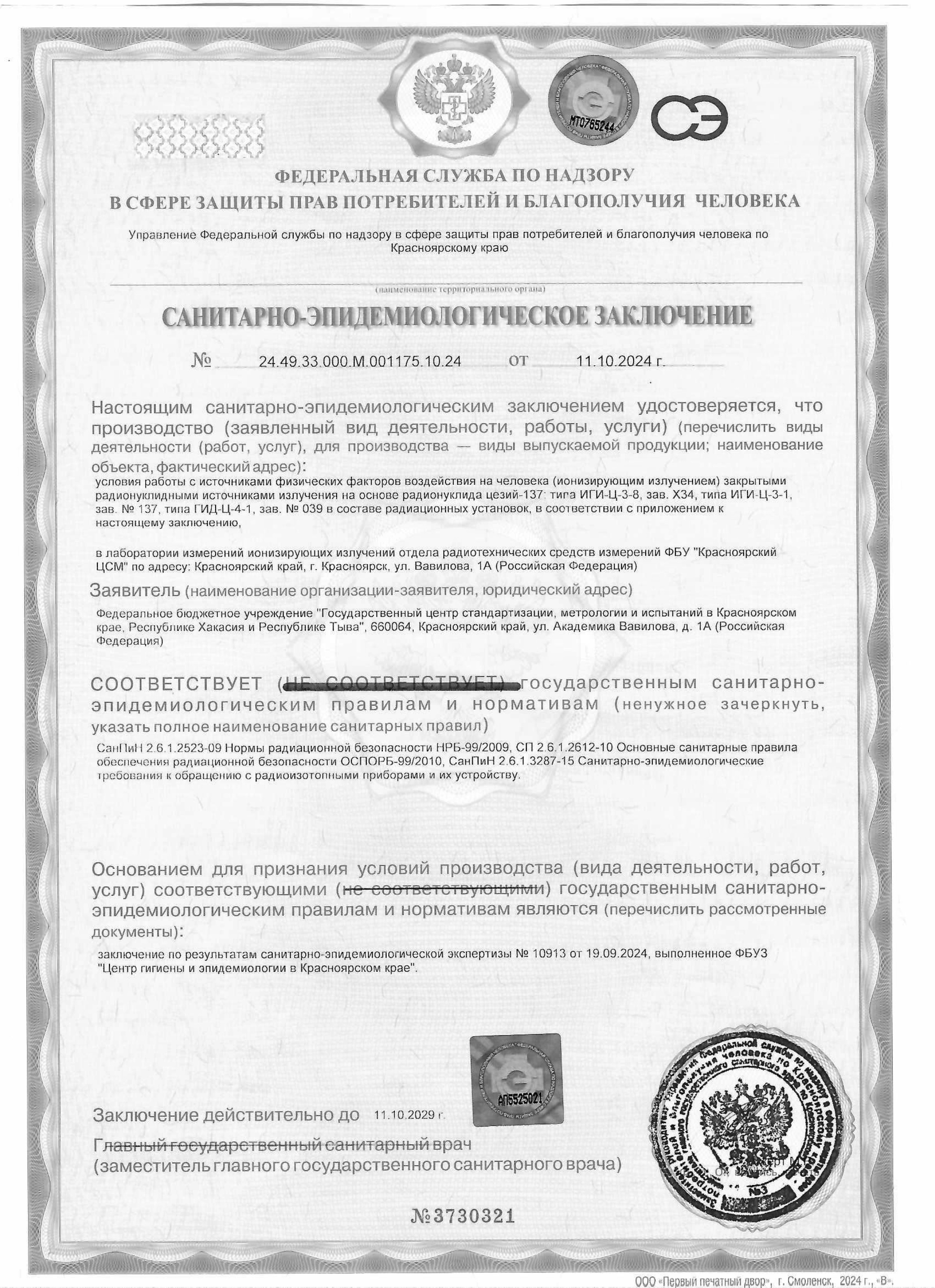 Санитарно-эпидемиологическое заключение на условия работы с источниками физических факторов воздействия на человека (ионизирующим излучением)