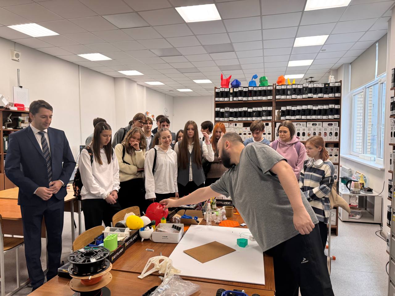 Учащиеся профильного класса Росстандарта побывали с обзорной экскурсией в Политехническом институте вуза, познакомились с возможностями центра прототипирования, ресурсного центра, лабораторией метрологического мониторинга. Доцент кафедры СМиУК Оксана Гаврилова рассказала старшеклассникам об истории института и современных возможностях обучения по «полному циклу» — от бакалавриата до получения ученой степени.