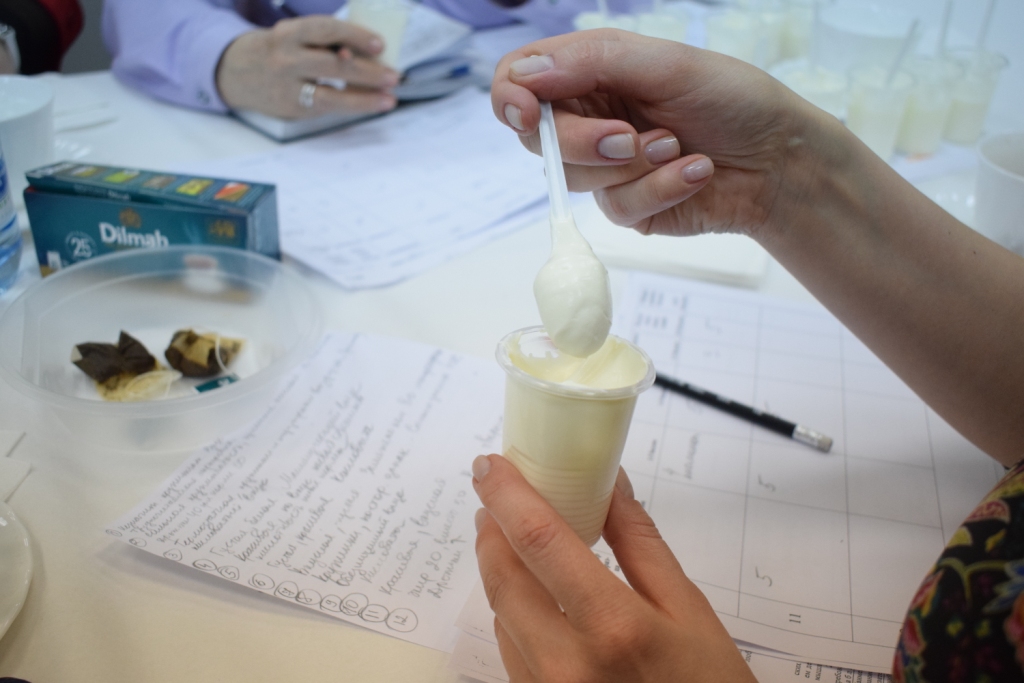 Затем состоялась дегустация, в которой приняли участие специалисты Центра стандартизации, метрологии и испытаний, министерства сельского хозяйства края, министерства промышленности, энергетики и торговли края, Торгово-экономического института СФУ, представители Краевого общества защиты прав потребителей, торговых сетей и предприятий — изготовителей сметаны.