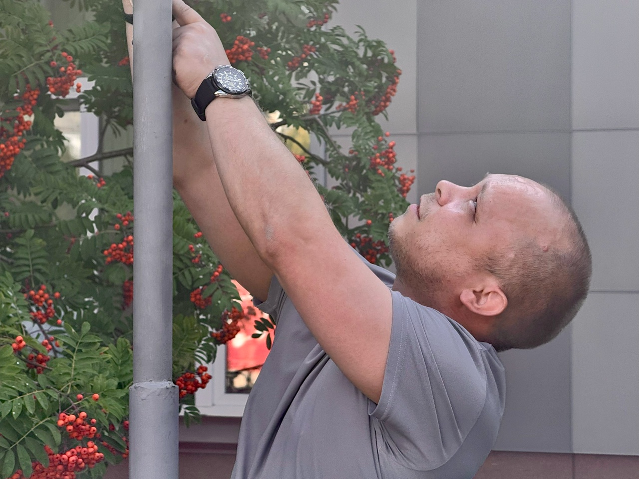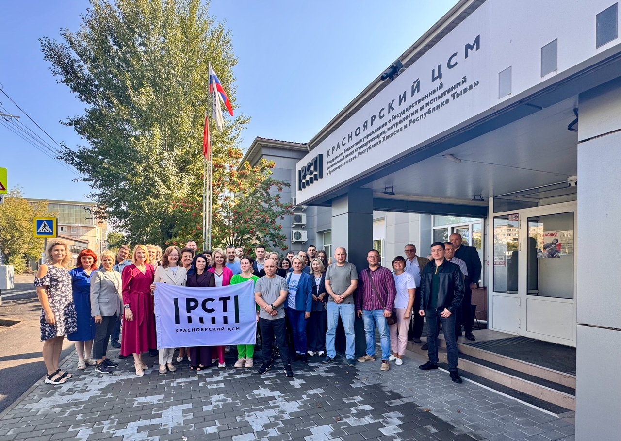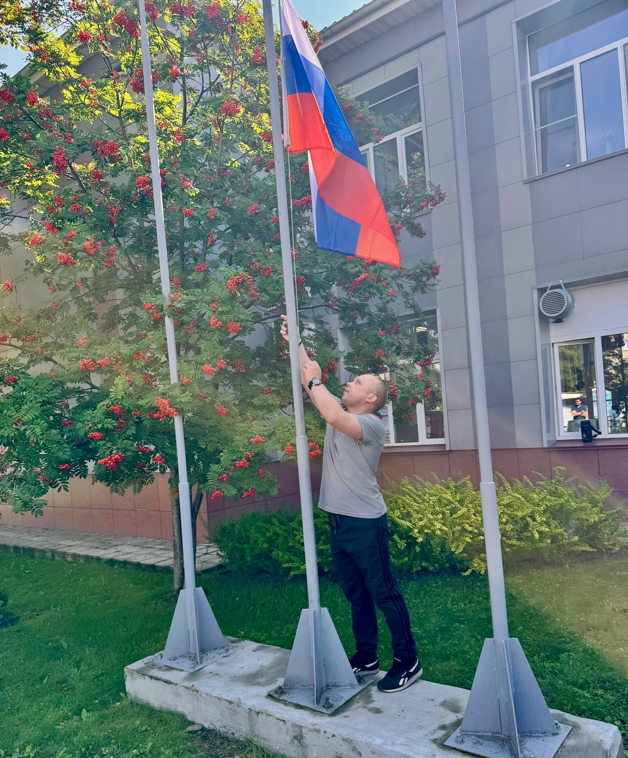 В честь праздника сотрудники ФБУ «Красноярский ЦСМ» объединились на церемонии торжественного поднятия российского флага, которое было доверено технику отдела реализации, участнику специальной военной операции Илье Шашко.