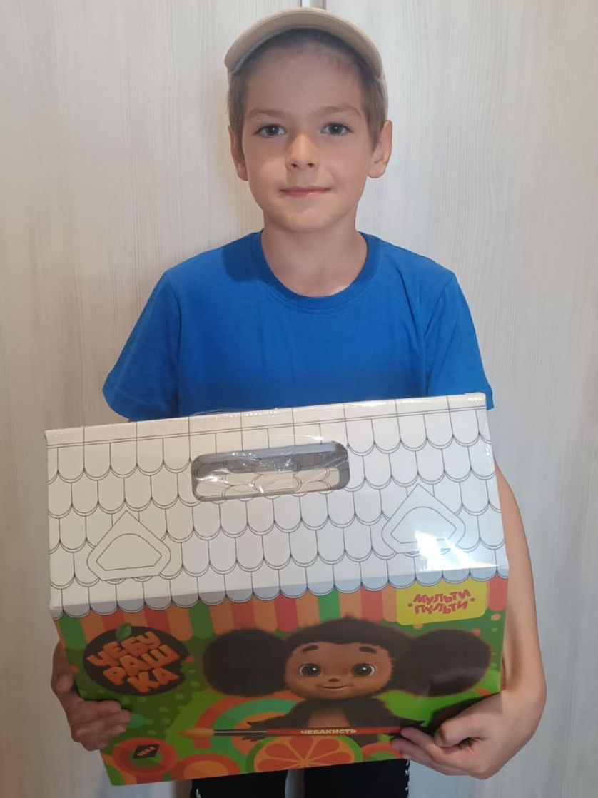 Ручки и тетрадки, яркие цветные карандаши, краски и альбомы –в составе подарка более 35 полезных позиций.