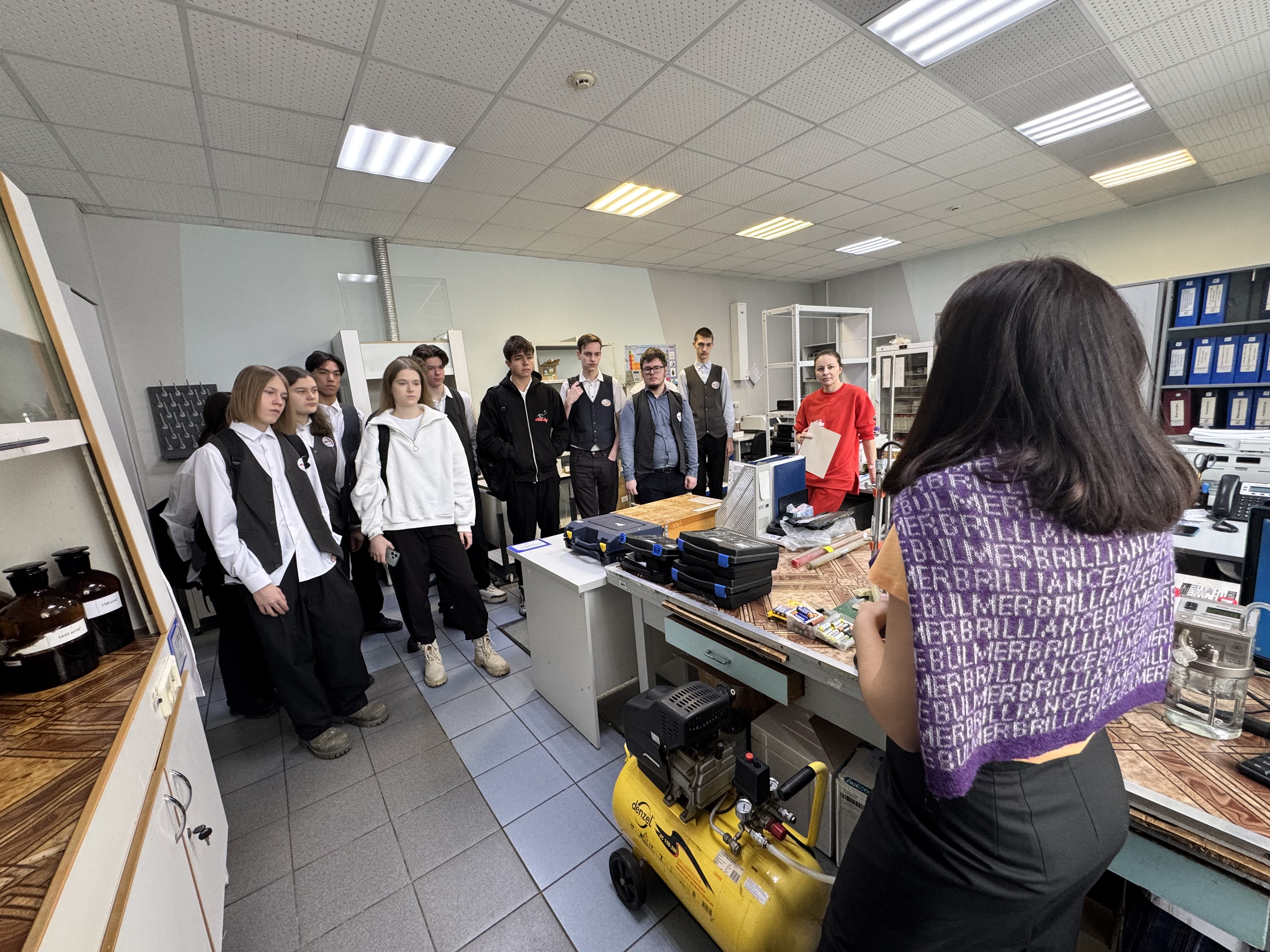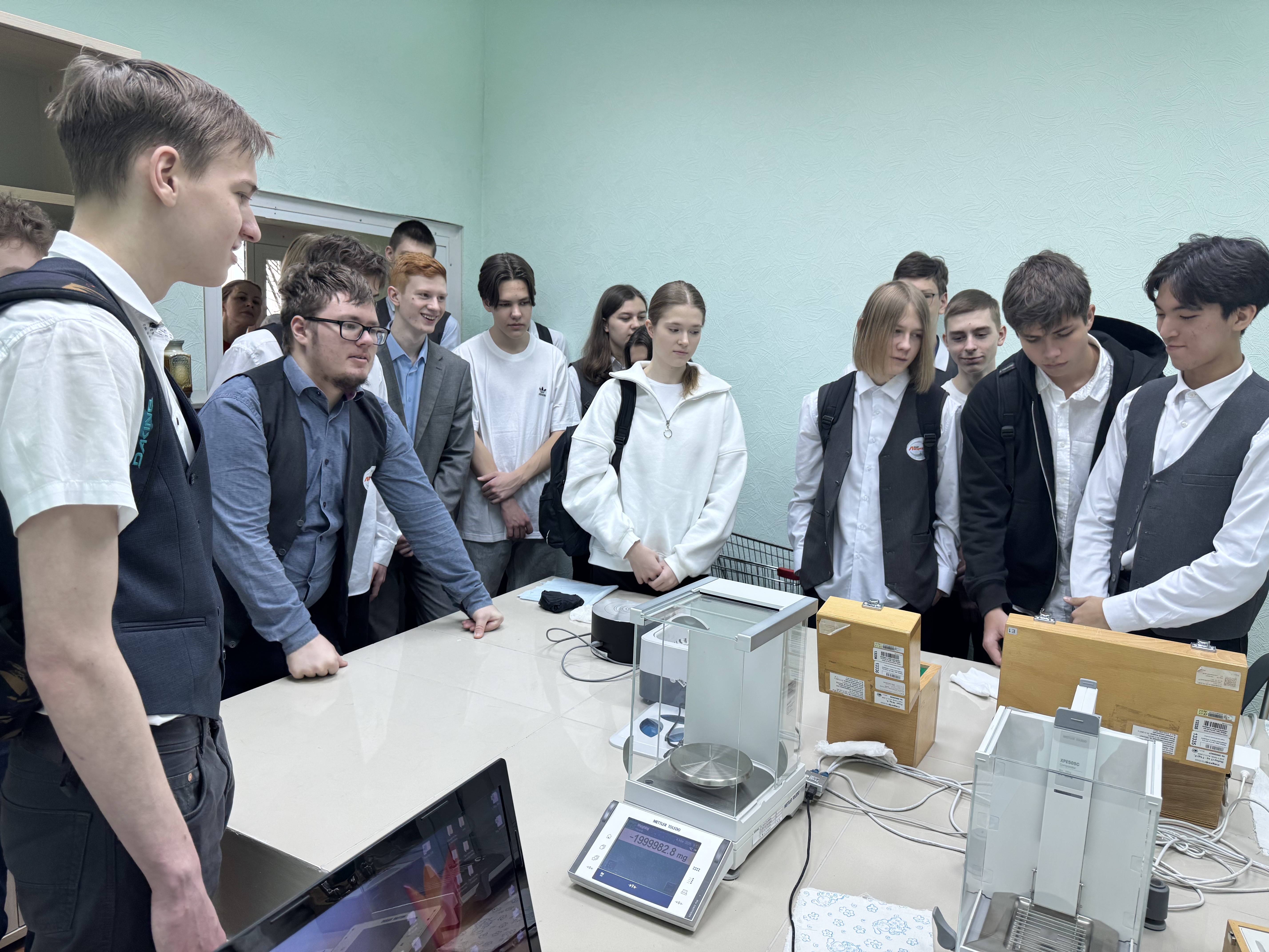 Свои первые впечатления о профессии ребята составили, посетив производственные подразделения Центра. Сотрудники отдела физико-химических средств измерений (СИ) показали, как проводится поверка анализаторов паров этанола, рассказали об оборудовании и возможностях отдела. Не менее увлекательно было ученикам в отделе механических СИ, здесь лицеистов завели в «особую комнату», где поддерживается постоянная влажность и температура для поверок гирь, а также познакомили с понятием «Эталон».